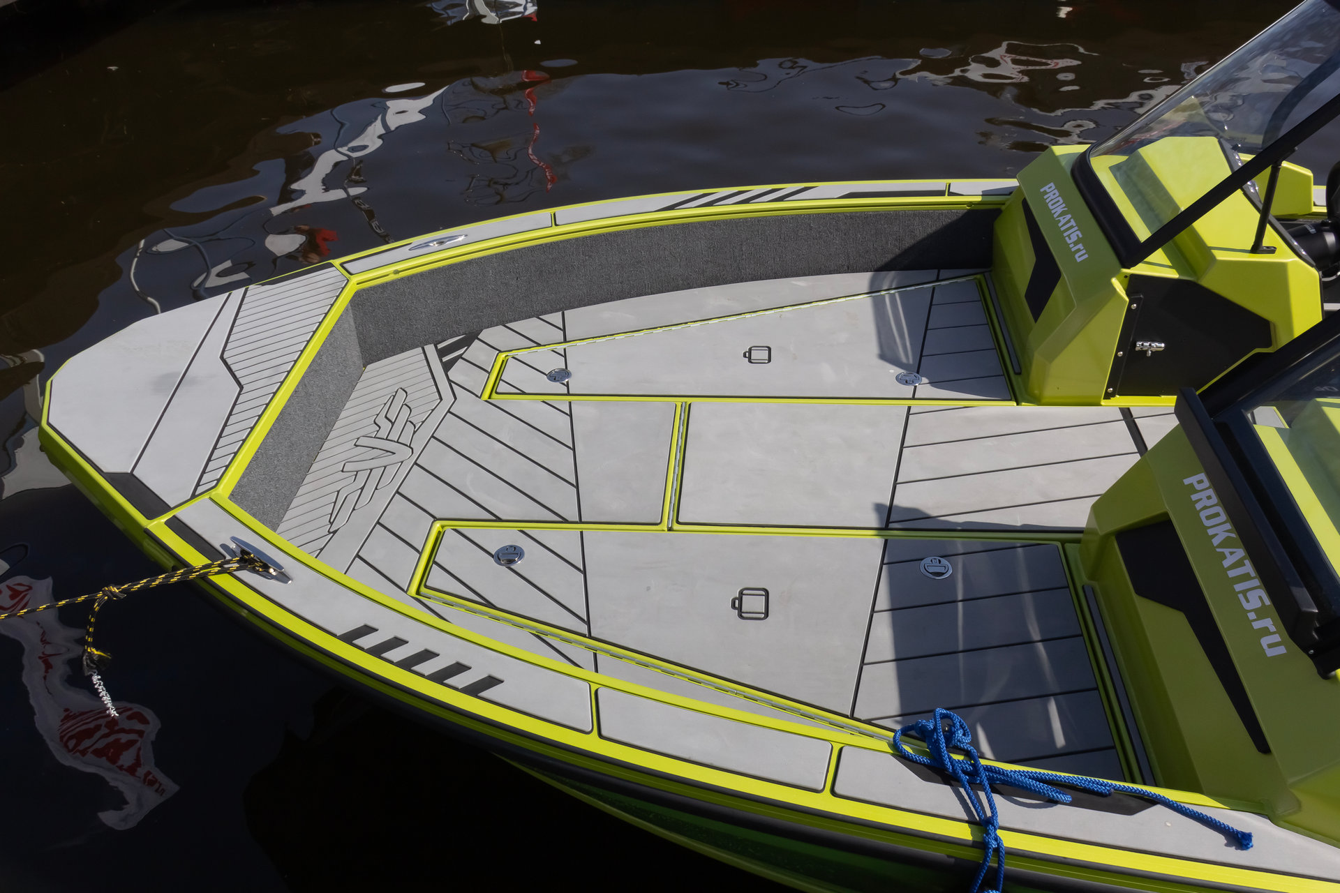 - Центральный рундук для шести спиннингов и ходового тента