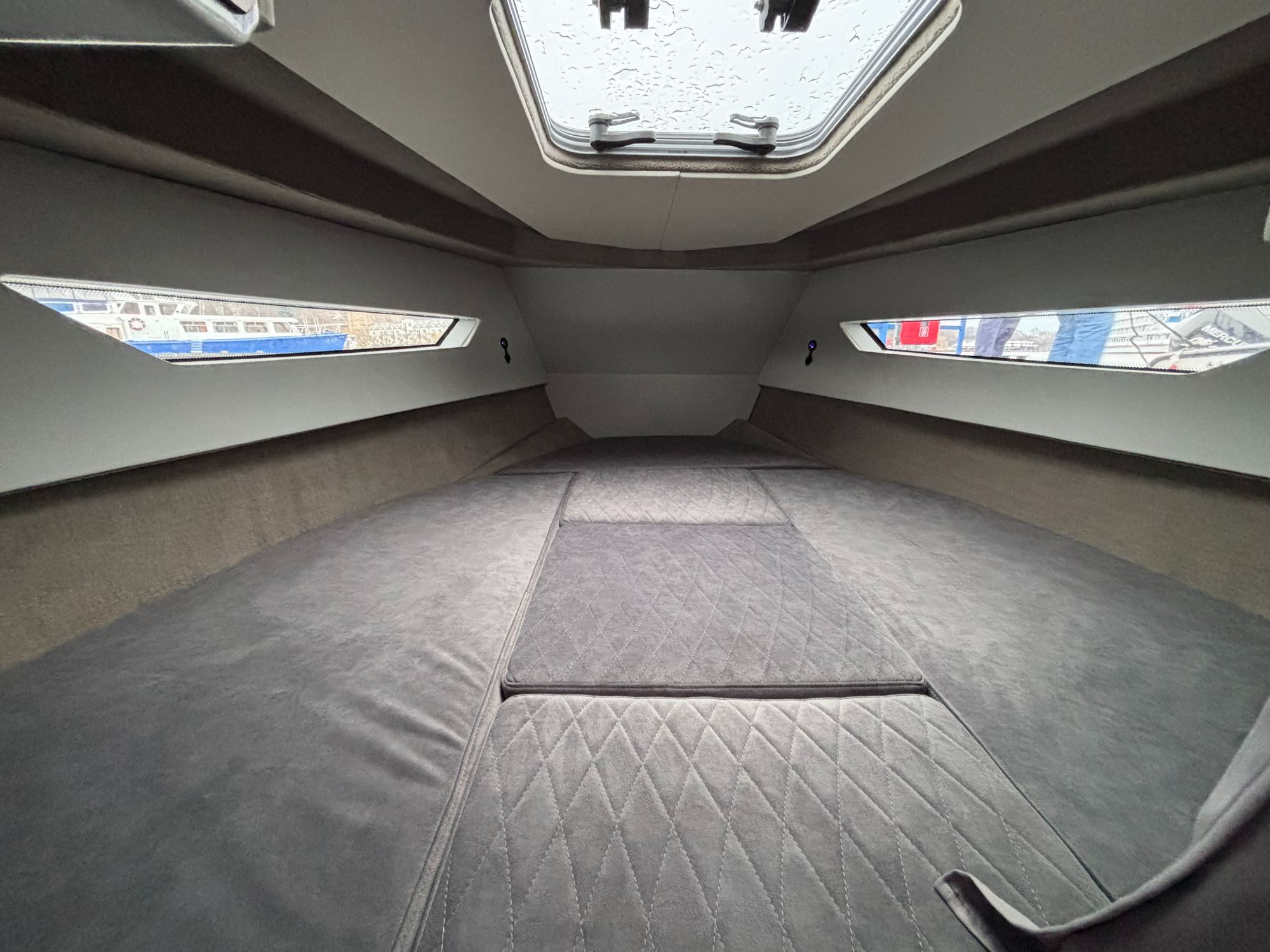 - Рундук-сиденье для кормового кокпита с мягкими подушками по левому борту